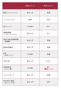 福岡県内の病気の流行は画像の通りです(11月9日までの集計)。